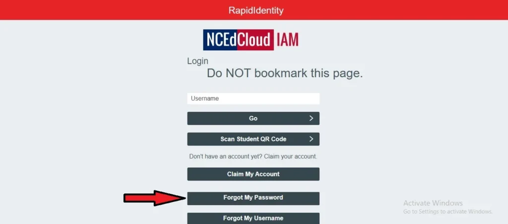 Open your browser and go to the official NCEdCloud login portal. - Click on “Forgot My Password”