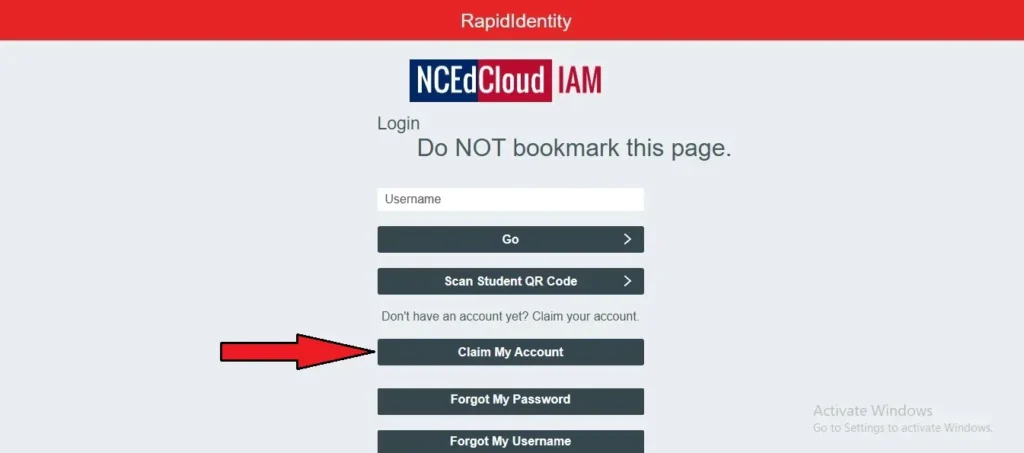 Open your browser and visit the official NCEdCloud login page. - Click on “Claim My Account”
